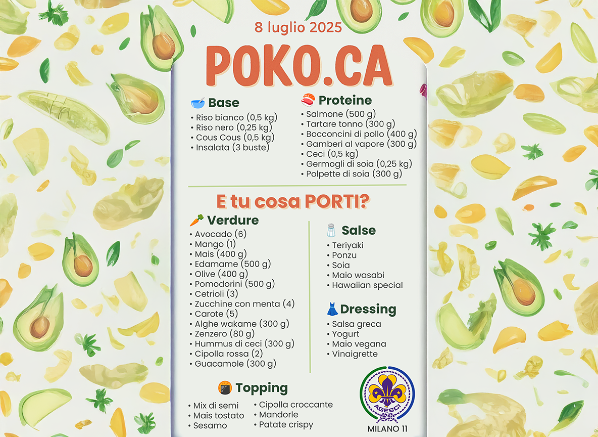 Arrivata l’estate ecco l’ultimo incontro prima dei campi estivi: la POKO.CA, un incontro conviviale per stare insieme, mangiare bene e dove ciascuno si partecipa portando un po’ di se’: un’esperienza costruita sulla partecipazione.